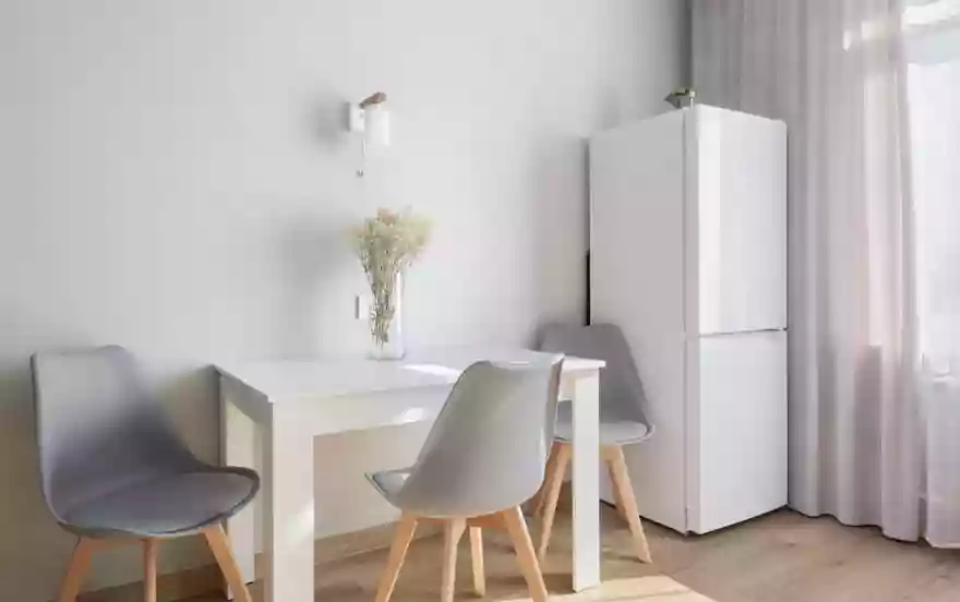Современная мебель и ремонт, имеется вся необходимая бытовая техника, вплоть до блендера и мультиварки, посуда.
