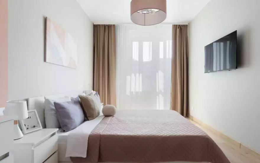 Удобные спальные места. В апартах приятно находиться, много воздуха и света, вдохновляющая атмосфера продуманного стильного дизайна, есть застекленная лоджия, с зоной отдыха