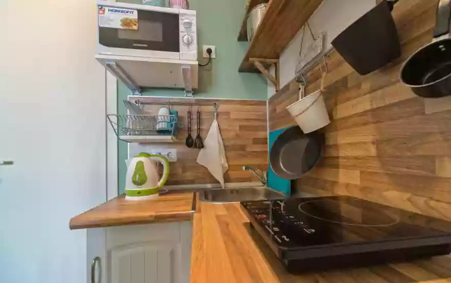 Апартаменты расположены в небольшом апарт-отеле на 3 номера. Каждые апартаменты изолированы от других и имеет все удобства внутри - собственную кухню и ванную комнату, которую не надо ни с кем делить. Апартаменты идеально подойдут для 2 людей. Новый дом 2016 года в центре города.