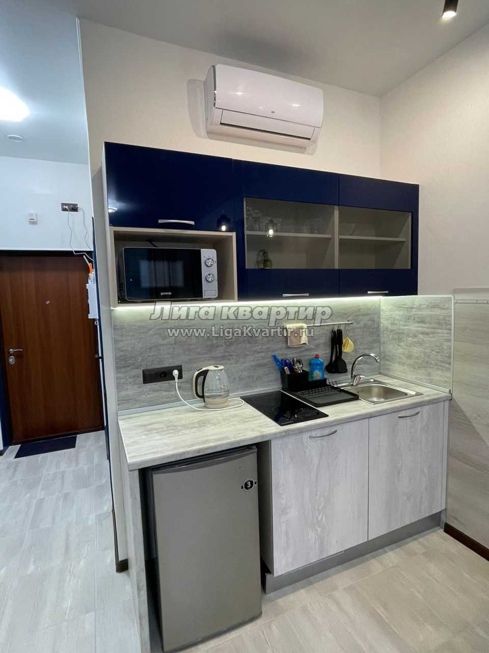 Квартира-студия общей площадью 27 квадратных метров, которая находится в 5 минутах ходьбы от метро Московская.
