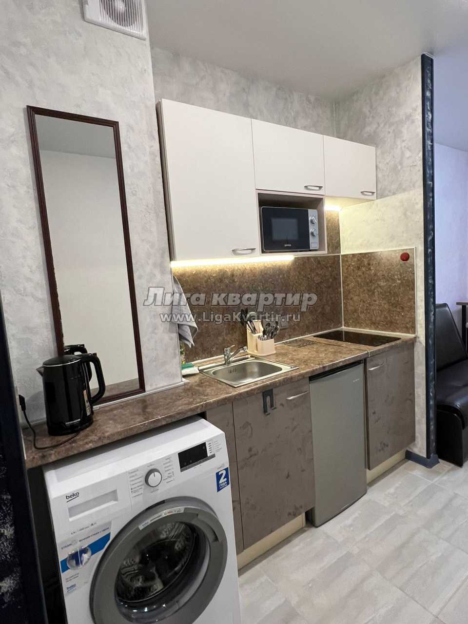 Квартира-студия общей площадью 27 квадратных метров, которая находится в 5 минутах ходьбы от метро Московская.