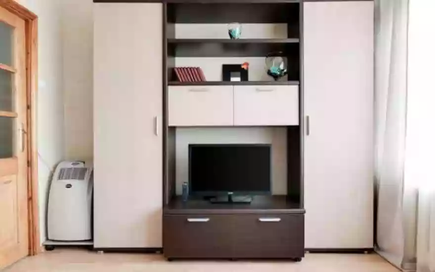 Из бытовой техники – плазменная панель, холодильник, микроволновая печь, плита с духовым шкафом, электрический чайник, фен, утюг с гладильной доской.