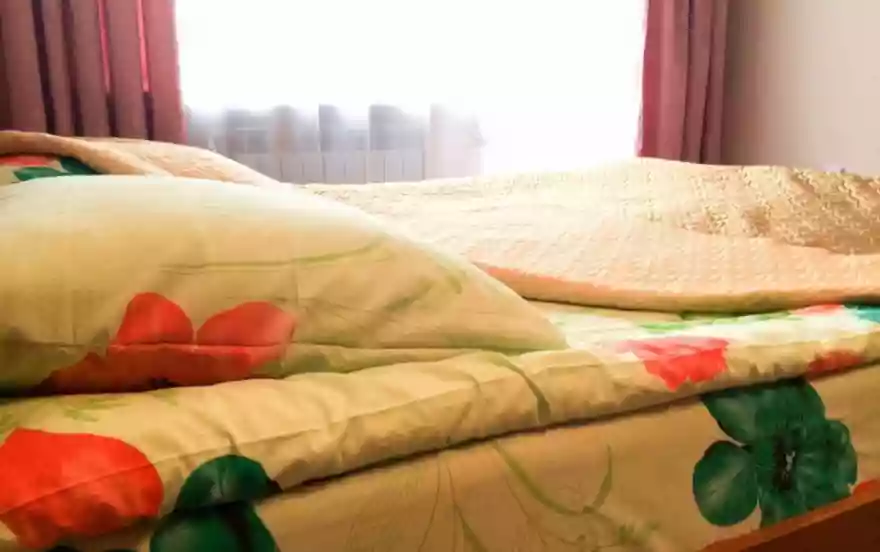 Квартира однокомнатная со всей необходимой мебелью и техникой, посудой, постельным бельем, полотенцами (в наличии холодильник, стиральная машинка автомат, утюг, гладильная доска, микроволновая печь, газовая плита, большой современный телевизор, двуспальная кровать, кресло-кровать, стенка-горка). На случай отключения горячей воды установлен бойлер. Уборка квартиры и смена белья после каждого клиента.