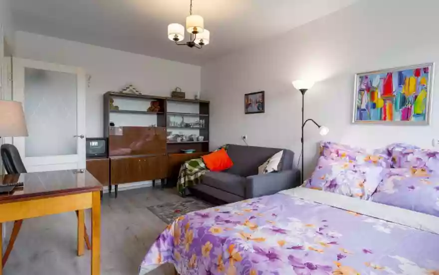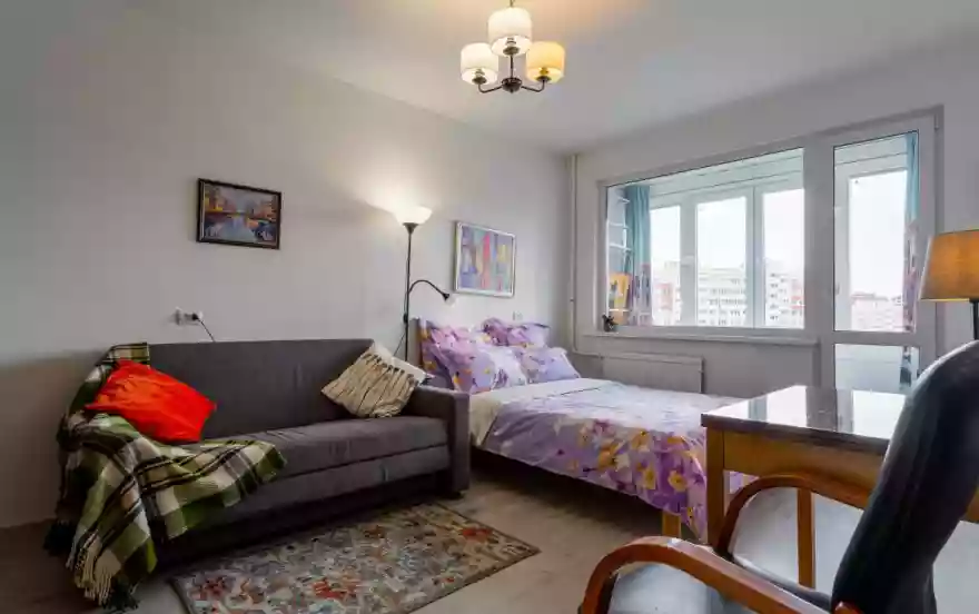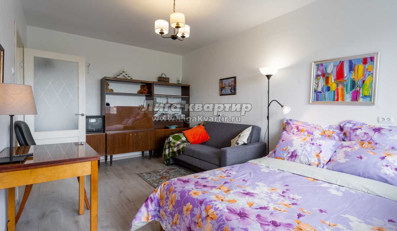 На полу постелен ламинат. В наличии вся необходимая мебель, техника, сантехника и посуда. В парадной 2 лифта. В квартире балкон. Есть безлимитный Wi-fi.