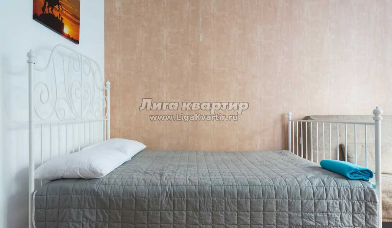 В квартире есть, большая двуспальная кровать, раскладной диван. Также имеется вся кухонная мебель.