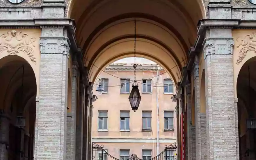 Двор сквозной, можно выйти на Набережную реки Фонтанки. Шума с улицы Рубинштейна вы не услышите.