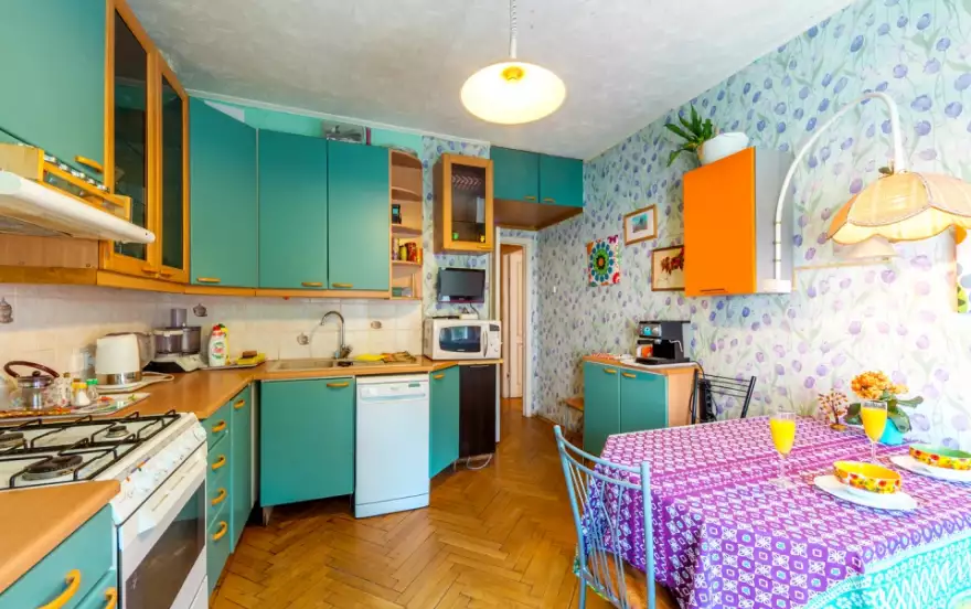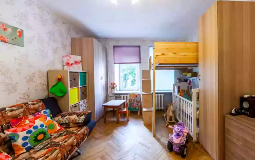 Две большие комнаты, гостиная с двуспальным диваном и интересным вторым этажом для детей и спальня с детским уголком (кроватка-маятник, игрушки, второй этаж с функциональной лестницей), полностью оборудованная кухня, раздельный санузел, интернет. Техника вся вплоть до посудомоечной машины и сушильной машины, ТВ в каждой комнате.