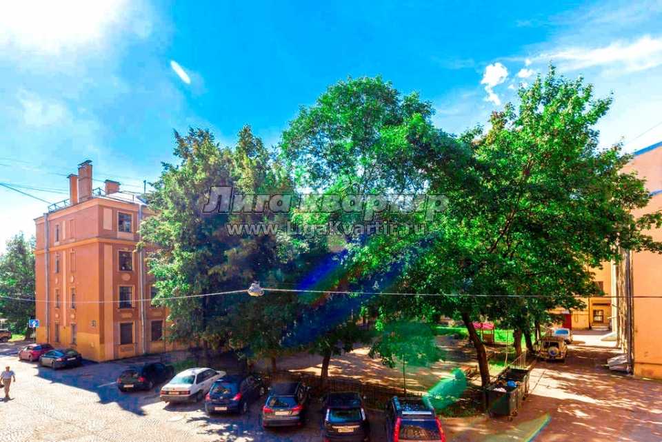 Вид на зеленую зону и детскую площадку. Односторонний малопроезжий переулок, один из древнейших в городе. Метро 3 мин. пешком.