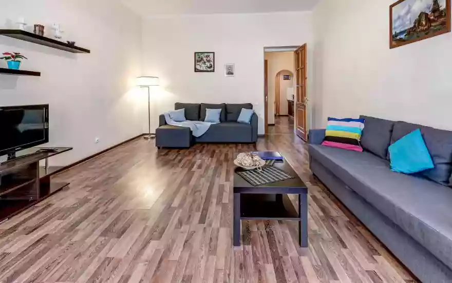 Уютная квартира идеально подойдет для отдыха после насыщенного дня. Идеальное расположение квартиры позволит вам легко добраться до всех достопримечательностей города. Двухкомнатная квартира поразит просторной гостиной с двумя окнами. Комната всегда будет наполнена свежестью и естественным светом. Расписной самовар на современной кухне придаёт особую атмосферу, наполняя дом историей и уютом. Кроме того, в апартаментах есть два телевизора. Откройте для себя удивительный мир с любимыми фильмами и сериалами.