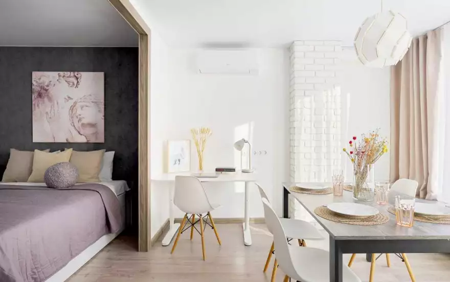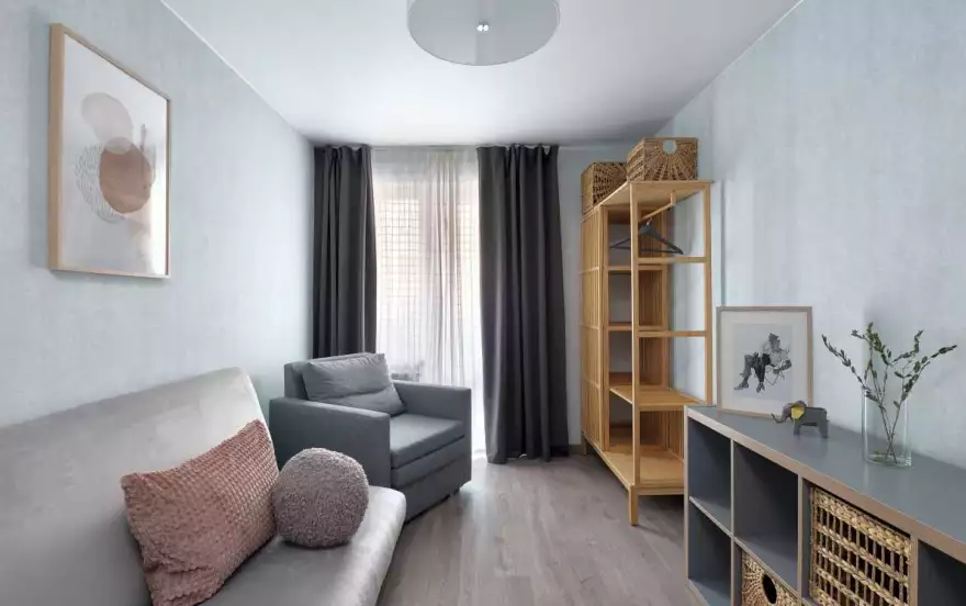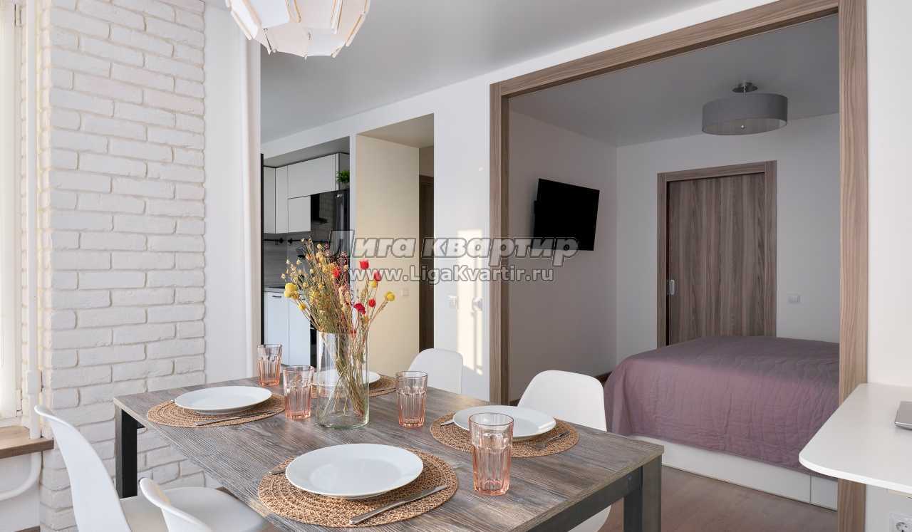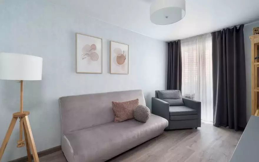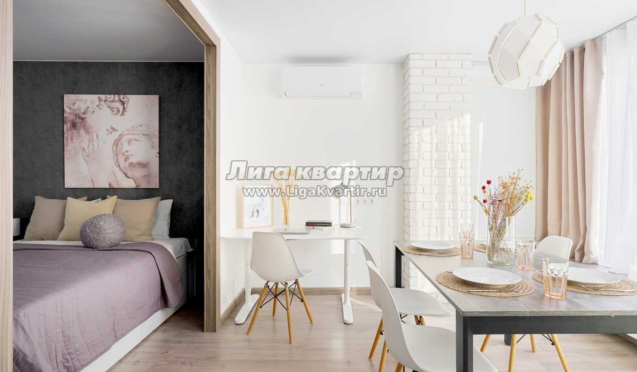Удобные спальные места. В апартах приятно находиться, много воздуха и света, вдохновляющая атмосфера продуманного стильного дизайна, есть застекленная лоджия.