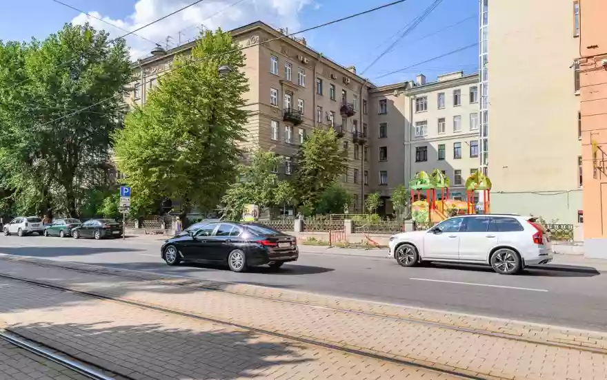 С БАЛКОНА нашего роскошного сталинского дома открывается прекрасный ВИД на изогнутый Кронверкский проспект, шпиль Петропавловской крепости и соборную мечеть начала XX века!