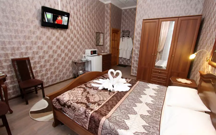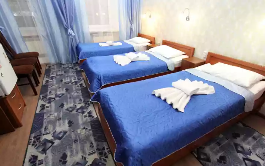 Номера с двуспальной кроватью, двумя раздельными, тремя раздельными кроватями в каждом свой санузел и душ.