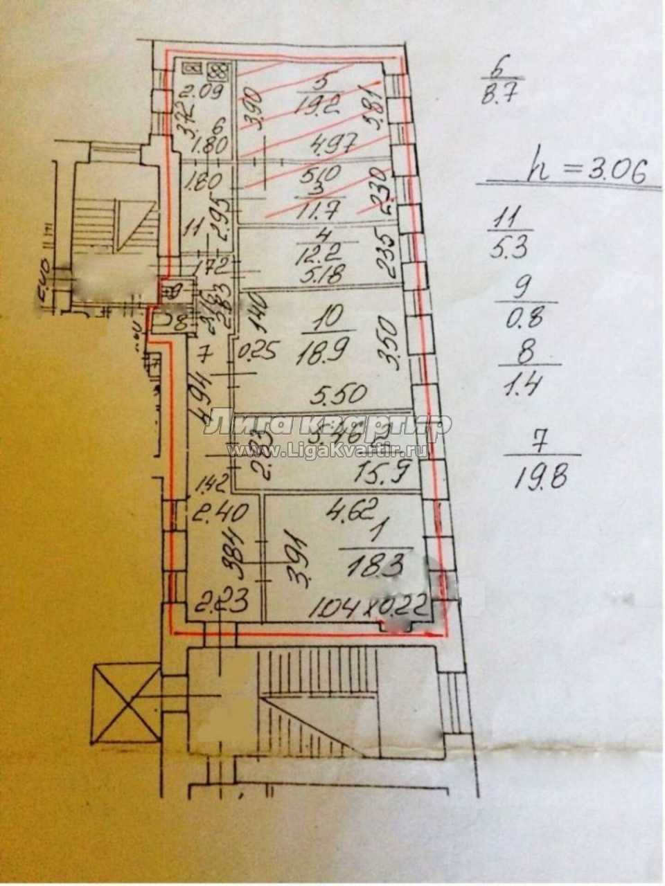 - Комнат в квартире: 5+