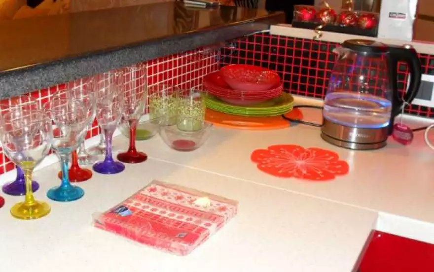 Для Вашего удобства здесь имеются: большой ЖК-телевизор с цифровыми и кабельными каналами, мягкая мебель с раскладывающимся диваном, стационарная кровать размером - 1,8 м./2 м. с ортопед матрасом "АСКОНА"; рядом с ней встроенный зеркальный шкаф-купе; барная стойка с каменной столешницей и крутящимися стульями; кухонный ламинированный гарнитур красного цвета от ИКЕА с микроволновкой и электрочайником; проведён высокоскоростной безлимитный интернет (стекловолокно), WiFi; в прихожей зоне для Вашего удобства – кожаные табуреты; в ванне – душевой отсек на двоих с мозаичным полом, инсталляция, стиральная мини-машина. Интересный, разноуровневый свет, включая светодиодную подсветку изголовья кровати и барной стойки, точечные светильники и т. д., управляемые с пульта ДУ. Живые цветы. Современный авторский дизайн помещения: сочетание классики и минимализма.