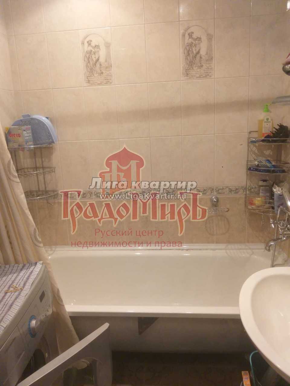 Ванная комната выполнена плиткой, вся сантехника в рабочем состоянии, есть стиральная машина.