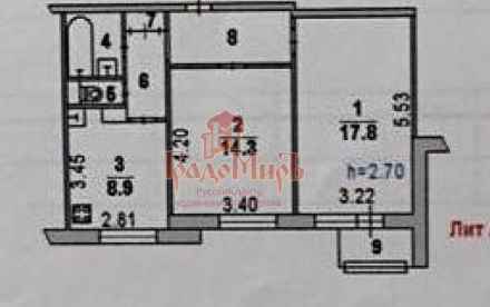 Общая площадь -53,5 м2. Отличная планировка с 2-мя изолированными комнатами (17.8+14.3 м2) и с просторной кухней 8,9 м2. Санузел раздельный. Окна ПВХ, балкон застеклён.