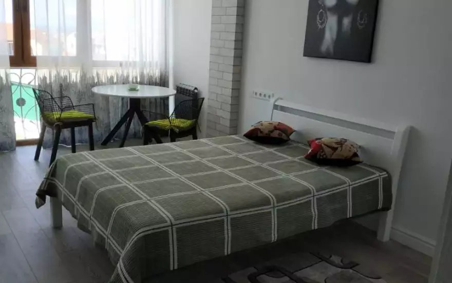 Номер оснащен всем необходимым для комфортного проживания: душевая кабинка, кухонная зона с индукционной плитой, комплект посуды, встроенный холодильник, микроволновка, кабельное TV, Wi-Fi, стиральная машина. Спальные места: двуспальная кровать. Всё новое, первая сдача. Окна выходят на морскую бухту, теневая сторона, в квартире не жарко. Своя закрытая территория, есть бесплатная парковка.
