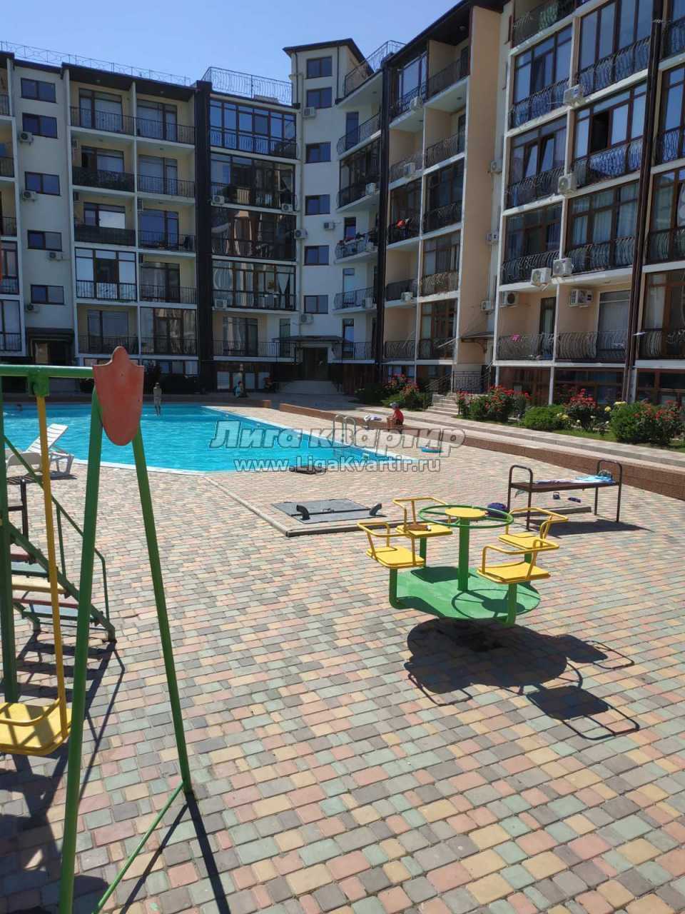 На территории комплекса есть открытый бассейн, тренажёрный зал, SPA салон, кафе-бар, салон красоты, детская площадка. Море рядом – 100 м, чистый галечно-песочный пляж. Территория комплекса закрытая, с круглосуточной охраной.