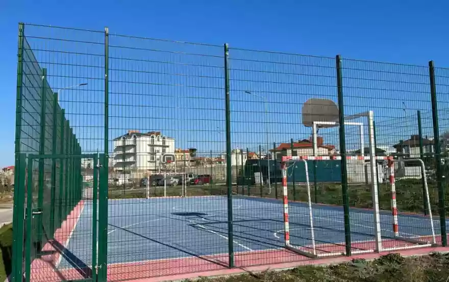 Комплекс оборудован детскими и спортивными площадками, также есть волейбольная спортплощадка.