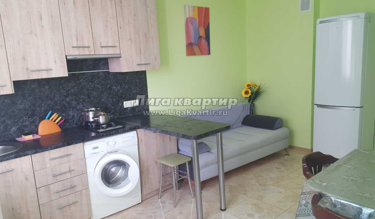 Сдается в аренду посуточно уютная 1-комнатная квартира возле моря. ул. Челнокова 29. Современный ремонт. В квартире Вы найдете все необходимое для комфортного проживания. Горячая вода (бойлер), интернет, ТВ+спутник. Спальные места: 2-спальная кровать + диван на кухне+детский диван в комнате. Кухня просторная 17 кв.м., современная бытовая техника, посуда. Есть балкон. ДО МОРЯ - 5 минут пешком. Во дворе современная детская площадка. Магазины рядом. За домом находится благоустроенный ДИНОПАРК (место отдыха для детей и взрослых). Дом новостройка.