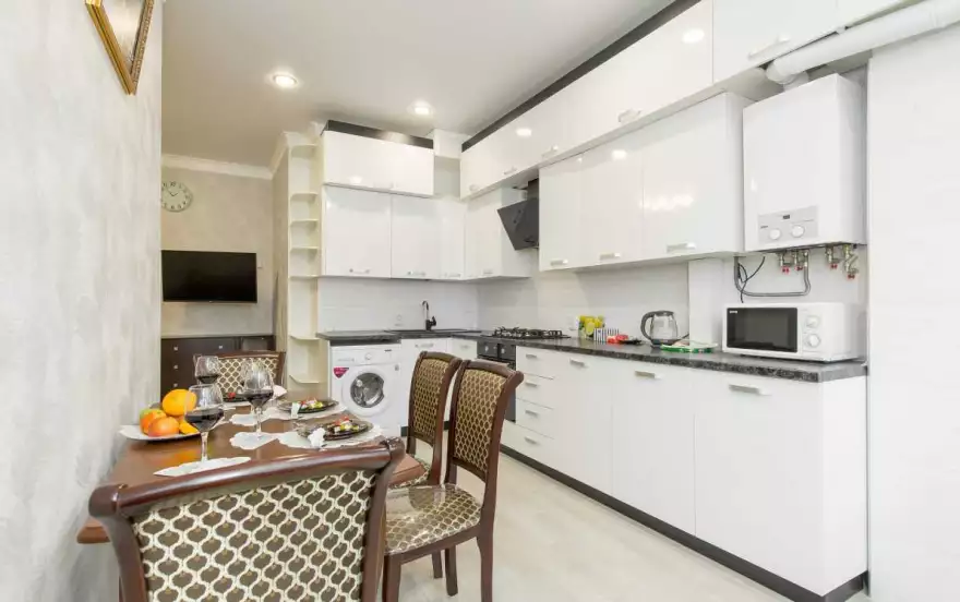 В квартире есть все необходимое: мебель, бытовая техника, кондиционер, гладильная доска, утюг, фен, посуда, постельное белье, полотенца, Wi-Fi. Чисто и уютно. Командировочным предоставляем полный пакет документов.