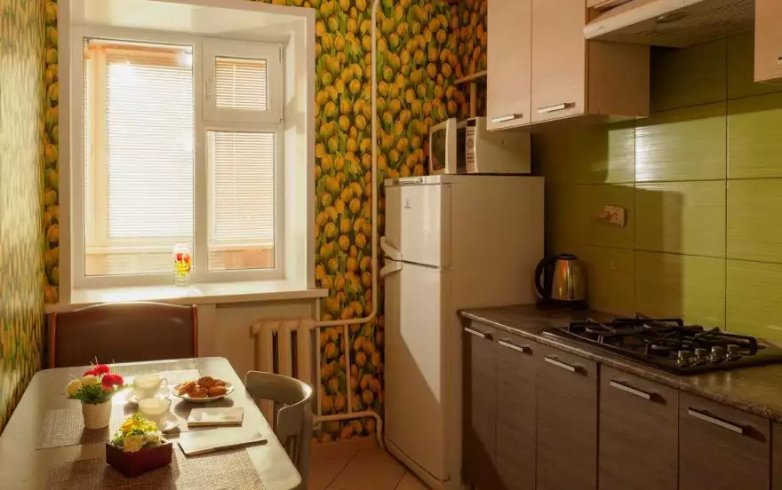✔ Компактная кухня оборудована современной мебелью и всей нужной для длительного проживания бытовой техникой. В распоряжении гостей квартиры полный комплект посуды и кухонной утвари на четыре персоны, чтобы чувствовать себя как дома и готовить привычный рацион по своему вкусу.