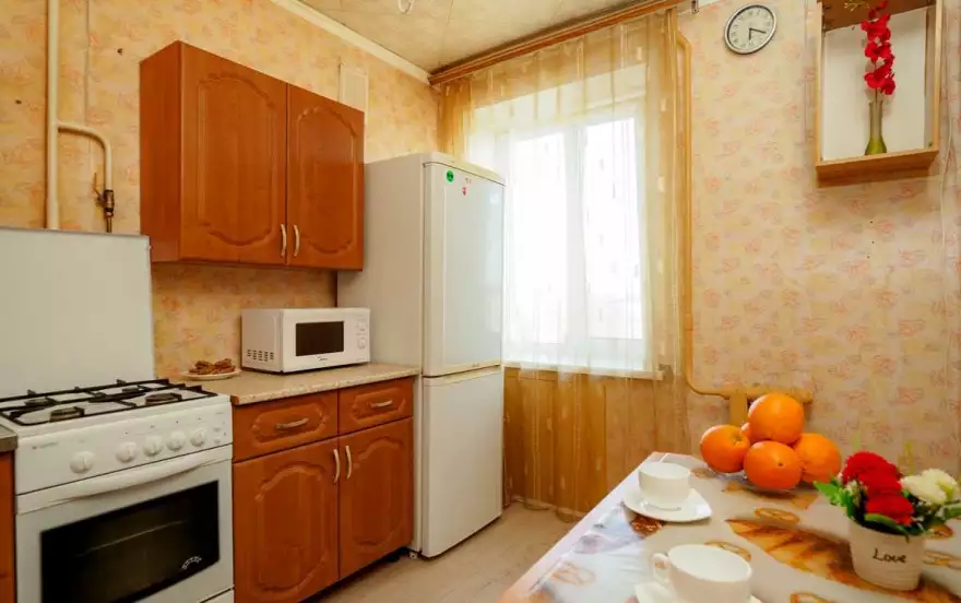 ✔ Компактная кухня оборудована современной мебелью и всей нужной для длительного проживания бытовой техникой. В распоряжении гостей квартиры полный комплект посуды и кухонной утвари на четыре персоны, чтобы чувствовать себя как дома и готовить привычный рацион по своему вкусу.