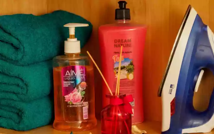 фен, утюг, гладильная доска, стиральная машина автомат, сушилка для белья.