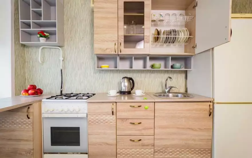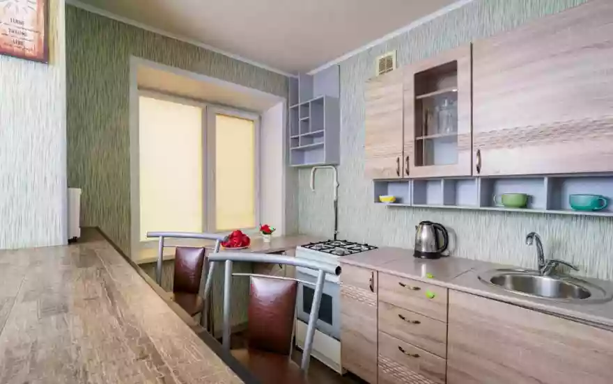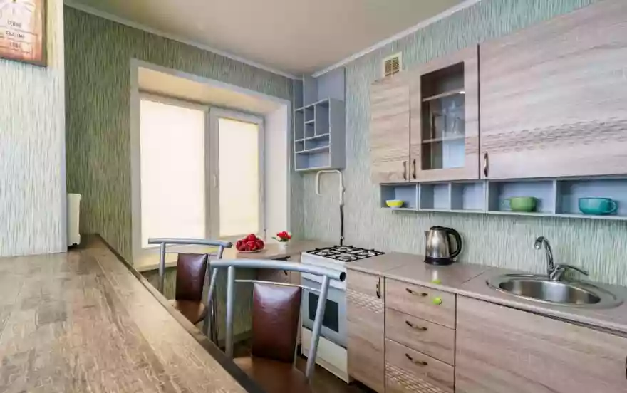 ✔ Компактная кухня оборудована современной мебелью и всей нужной для длительного проживания бытовой техникой. В распоряжении гостей квартиры полный комплект посуды и кухонной утвари на четыре персоны, чтобы чувствовать себя как дома и готовить привычный рацион по своему вкусу.