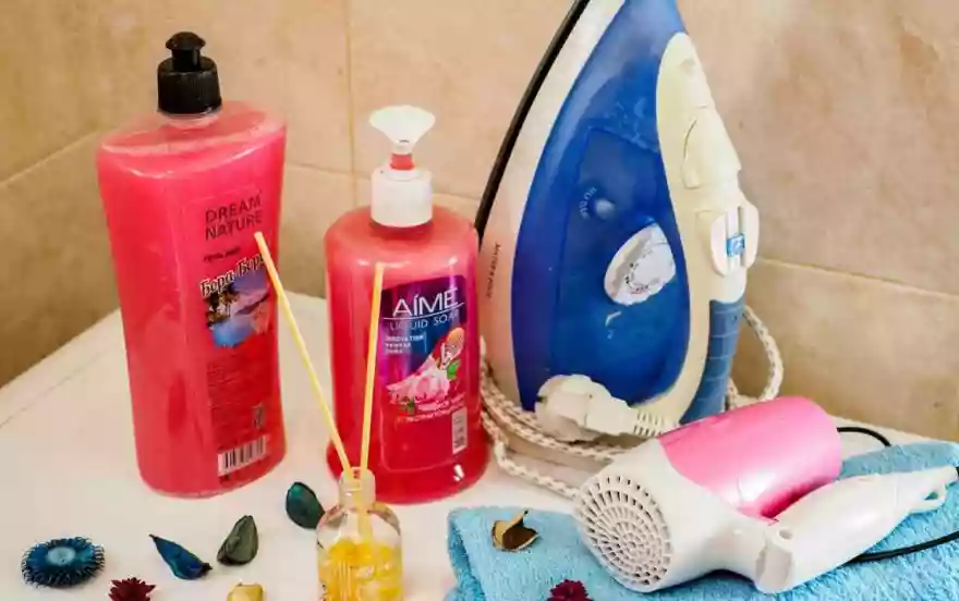 ⭐ фен, утюг, гладильная доска, стиральная машина автомат, сушилка для белья.