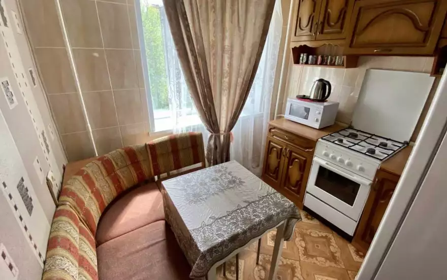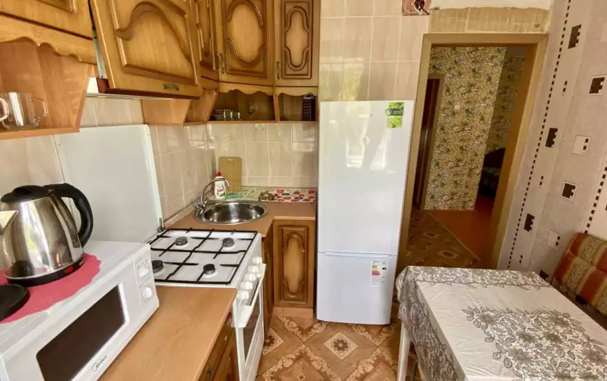 ✔ Компактная кухня оборудована современной мебелью и всей нужной для длительного проживания бытовой техникой. В распоряжении гостей квартиры полный комплект посуды и кухонной утвари на четыре персоны, чтобы чувствовать себя как дома и готовить привычный рацион по своему вкусу.