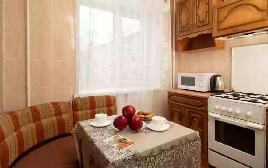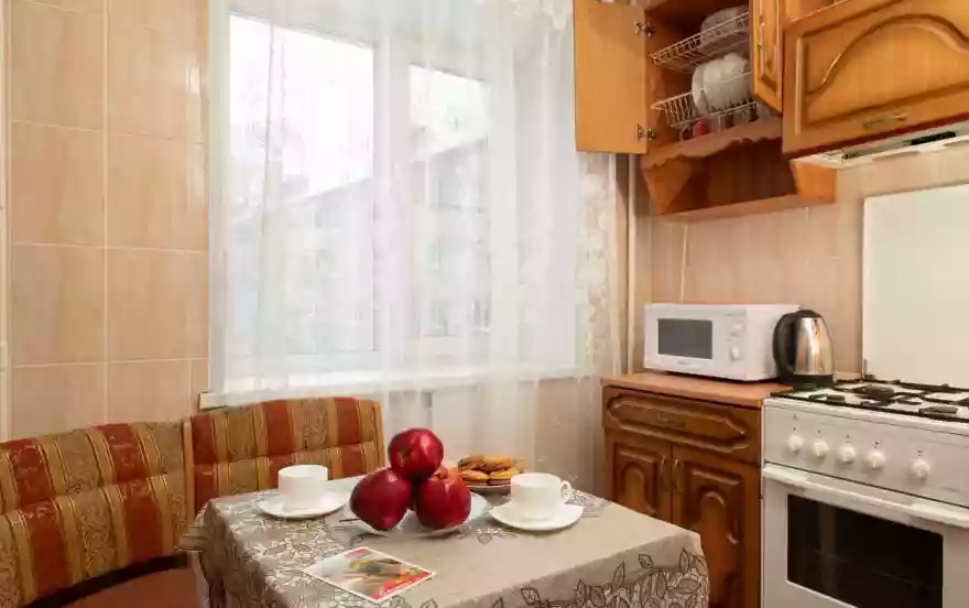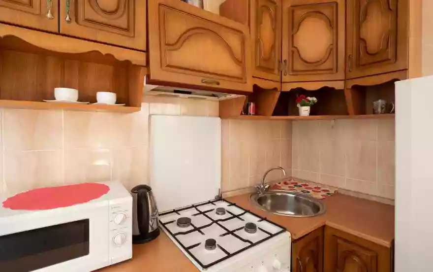 ✔Компактная кухня оборудована современной мебелью и всей нужной для длительного проживания бытовой техникой. В распоряжении гостей квартиры полный комплект посуды и кухонной утвари на четыре персоны, чтобы чувствовать себя как дома и готовить привычный рацион по своему вкусу.