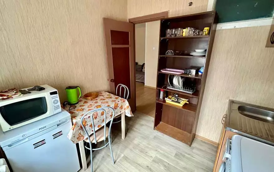 ✔ Компактная кухня оборудована современной мебелью и всей нужной для длительного проживания бытовой техникой. В распоряжении гостей квартиры полный комплект посуды и кухонной утвари на четыре персоны, чтобы чувствовать себя как дома и готовить привычный рацион по своему вкусу.