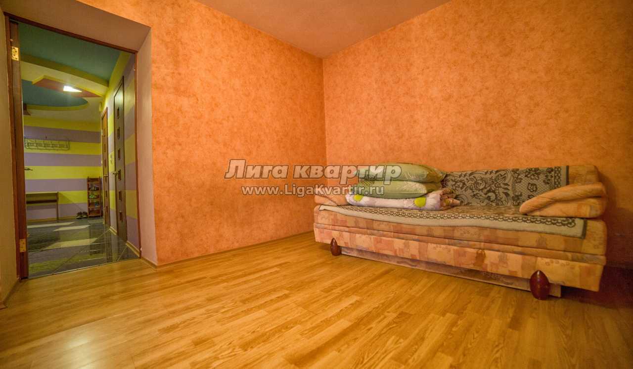 Квартира укомплектована стильной мебелью: двуспальная кровать, мягкий диван и 4 стула где удобно разместитесь Вы и Ваша семья перед экраном телевизора за обеденным столом. Для полноценного, здорового сна и отдыха застелено постельное бельё. Раскладывающийся мягкий диван с комфортабельным спальным местом для третьего и четвертого человека. Апартаменты располагают балконом, с видом во двор и большой комнатой со встроенным шкафом под личные вещи.