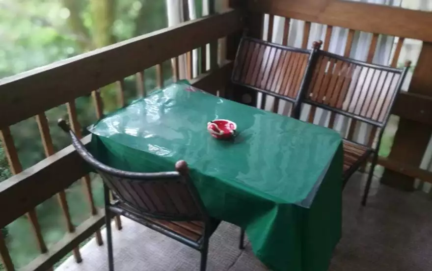 Особое очарование месту придаёт просторная терраса — идеальное пространство для неспешных завтраков на свежем воздухе или уютных вечерних посиделок за бокалом вина в окружении звуков природы.