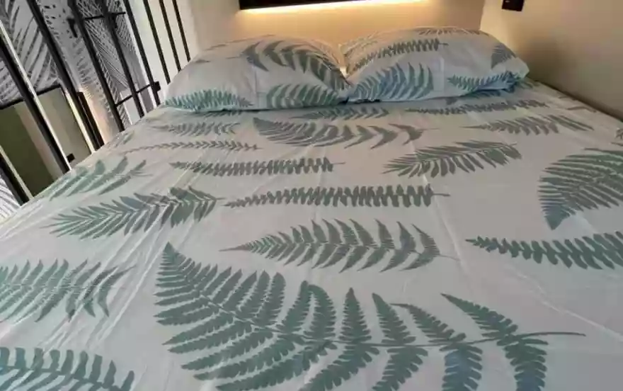 - Двуспальная кровать-чердак (над кухней)