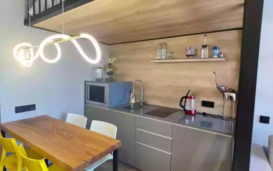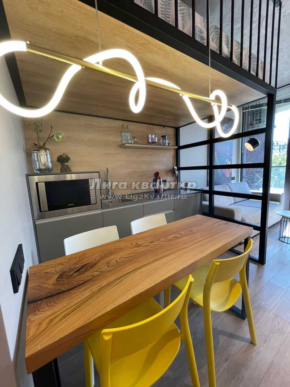 Апартаменты "Family" - современная студия с качественным дизайнерским ремонтом и террасой. Студия располагается на втором этаже.