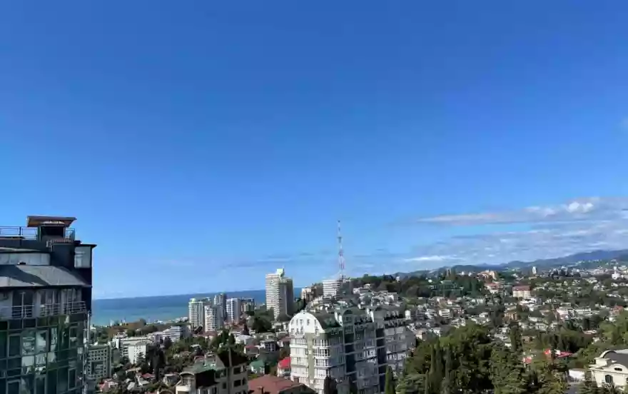 Предлагаем в аренду прекрасные новые ЛЮКС апартаменты в жилом доме премиум-класса "Метрополь" с бассейном на крыше на 17 этаже с завораживающим прямым видом на море и весь Сочи и видовой lounge-зоной.