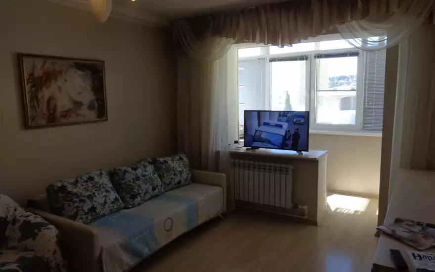 Комфортабельная квартира в центре, на одной из самых живописных улиц. C одной стороны красивая пешеходная улица с другой тихий дворик с хорошей детской площадкой Шаговая доступность к морским пляжам, аквапарку, ж/д и морскому вокзалу. Самый центр, поэтому рядом много магазинов, столовых и кофе, а также музей города, к/з Фестивальный и разнообразные достопримечательности. В квартире сделан современный ремонт, большая двуспальная кровать и раскладывающийся диван. При необходимости можно отделить спальную зону шторой. Удобные кресла и большая плазменная панель. Из окон открывается потрясающий вид на улицу Навагинская.