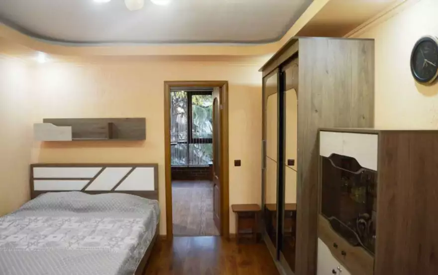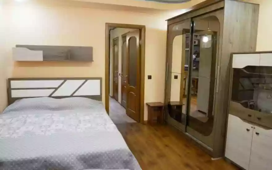Квартира рассчитана на проживание 4 человек (2-х спальная кровать, 2-х спальный диван), тв, сплит-система, холодильник, газовая плита, Wi-Fi, стиральная машинка-автомат. Санузел совмещенный, сушилка для белья за окном, гладильная доска и утюг для комфортного проживания.