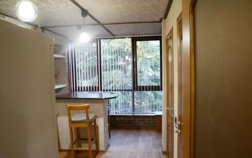 1-но комн. малосемейная (площадь квартиры 30 м2) квартира расположена на 4 этаже 4-х этажного здания. здание без лифта, балкон общий на весь этаж, вид из окна на ул Лазарева, до моря 5 мин пешком (500 м.).