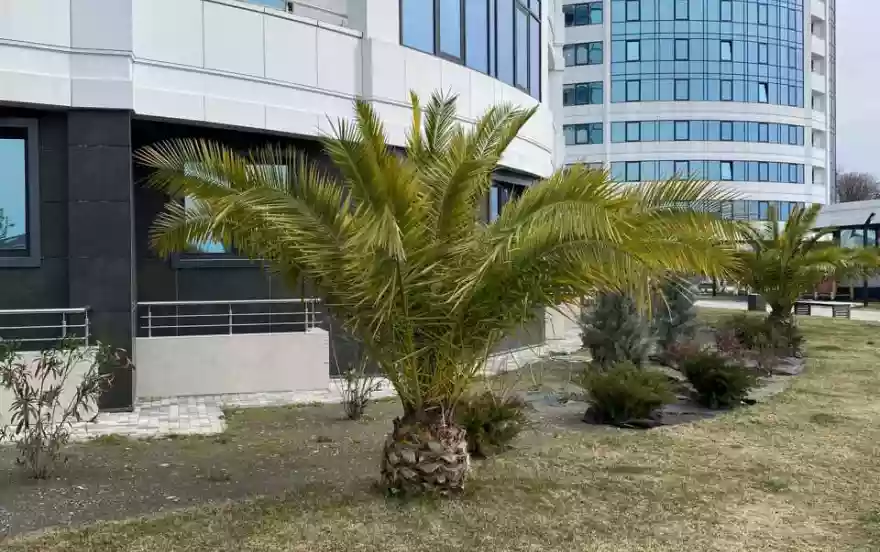 Огромная зелёная территория комплекса. За комплексом начинается зелёная заповедная зона.