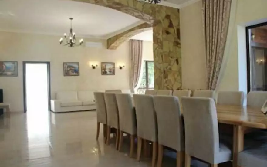Экстерьер и интерьер виллы выполнен по эксклюзивному дизайнерскому проекту. Самые современные материалы внутренней и наружной отделки, ценные породы древесины, мрамор, керамогранит, венецианская штукатурка, живопись на стенах, террасы с ротанговой мебелью по всему дому, на всех этажах