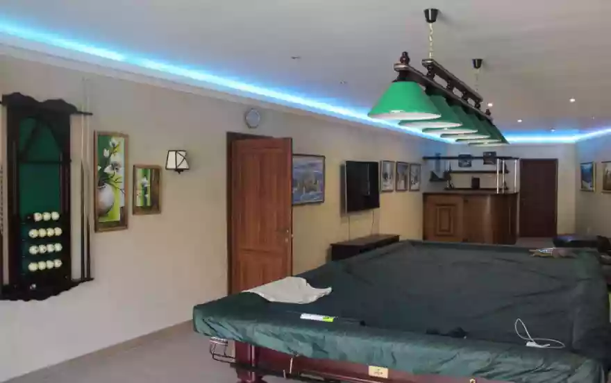 Украшать Ваш досуг будут - караоке бар, каминный зал, банкетные залы с террасами, бильярдный холл (с профессиональным столом), теннисный зал также укомплектован столами и всем необходимым инвентарем.
