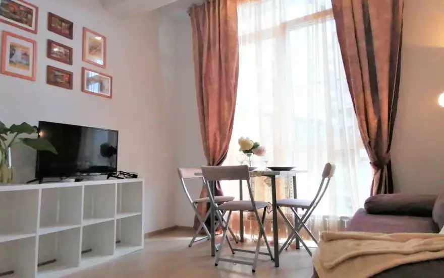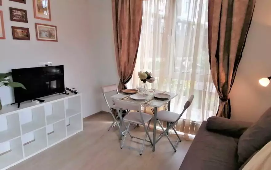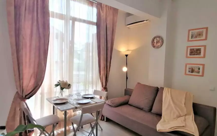 Уютная евродвушка 30 м. в гостевом доме с видом на город и террасой удобно расположены в Сочи, в тихом районе недалеко от центра города. В квартире имеется все необходимое для комфортного отдыха. Имеется Находится в мкр. Светлана (вверху), недалеко находится Цирк, Дендрарий, Зимний театр, Летний театр. Есть вся необходимая мебель и техника для комфортного проживания. До моря 25 мин пешком, 7 мин на автобусе, 5 минут на машине Рядом расположены магазины Магнит и Пятёрочка. Предоставляется бесплатный Wi-Fi и частная парковка на территории при наличии свободных мест. Есть небольшая мангальная зона для любителей барбекю.