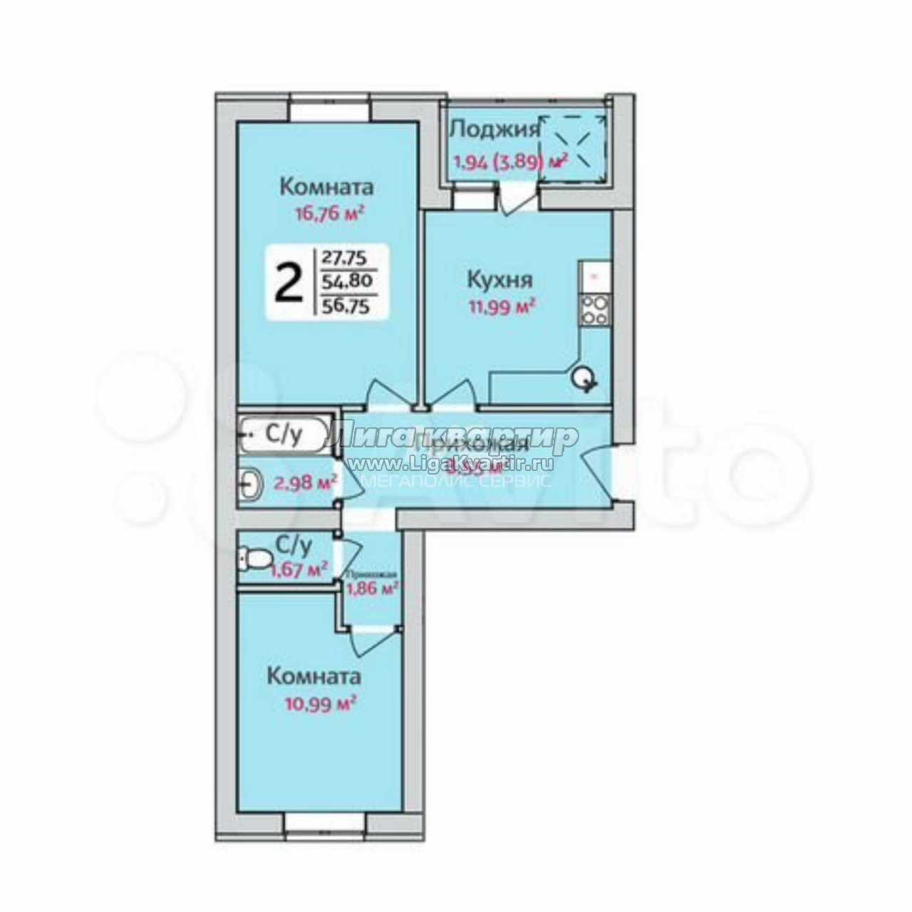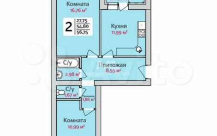 - Общая площадь: 56.8 м²