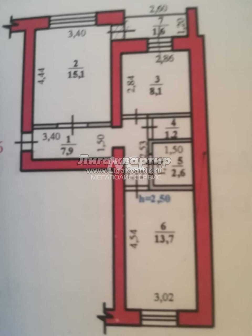 - Общая площадь: 50 м²