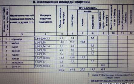 - Общая площадь: 44.4 м²