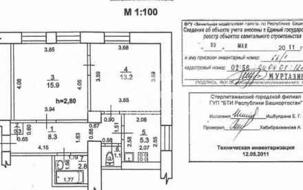 Площадь 48,3 кв.м, жилая 27 кв.м, кухня 8,3 кв.м, высота потолков 3 м.