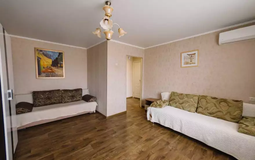 2 раздельных спальных места , 1 жк . тв, бесплатный wi-fi с круглосуточным доступом, просторный зал и большая кухонная зона которая оснащена всем необходимым кухонным гарнитуром